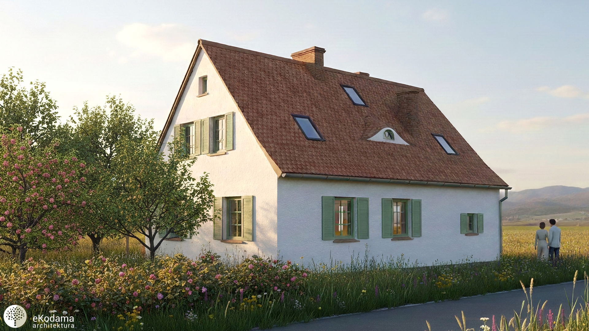 Czy nie cudownie jest zakochać się w starej ruince i dać jej zupełnie drugie życie? Jako eKodama jesteśmy niezmiennie zakochane w starych domach. Tam, gdzie inni widzą tylko stare mury i problemy, my dostrzegamy ogromny potencjał. Ten uroczy, poniemiecki budynek w Kotlinie Kłodzkiej, w którym kiedyś mieścił się lokalny komisariat, właśnie dostał drugie życie. Zaprojektowałyśmy jego renowację jako letnią przystań dla cudownej pary, która postanowiła spędzić tutaj jesień swojego życia. Chciałyśmy stworzyć dla nich miejsce autentyczne, ciepłe i w pełni zintegrowane z sielskim otoczeniem gór.